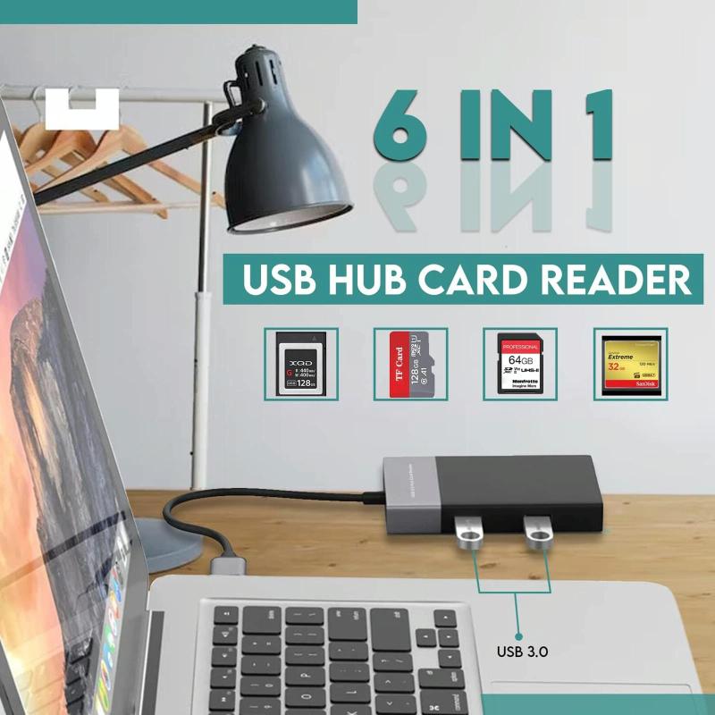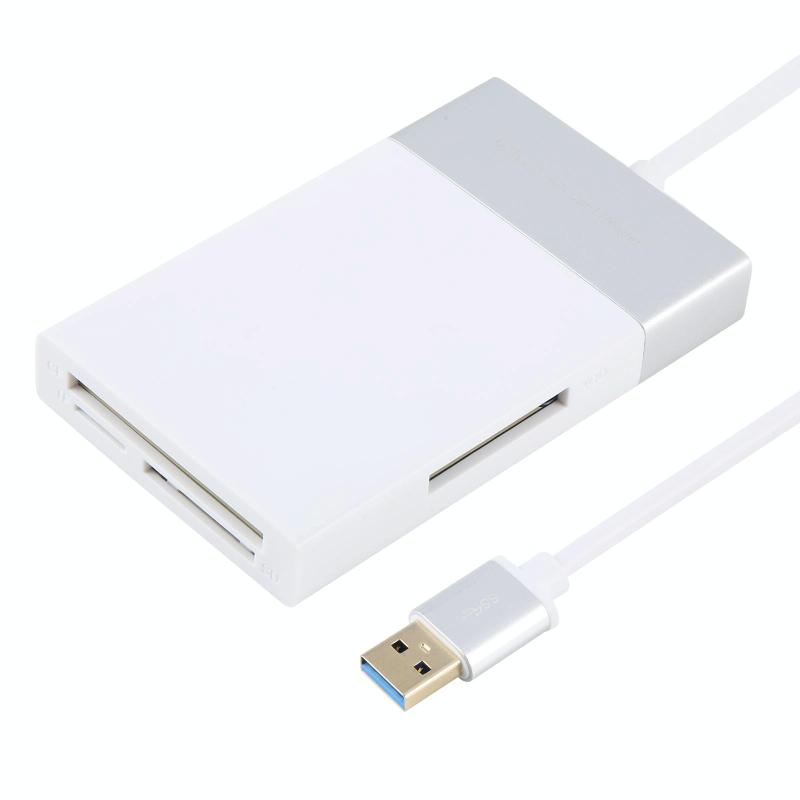 6 In 1 Multi-function Dual USB 3.0 + XQD + CF + TF + SD Card Reader (Silver)