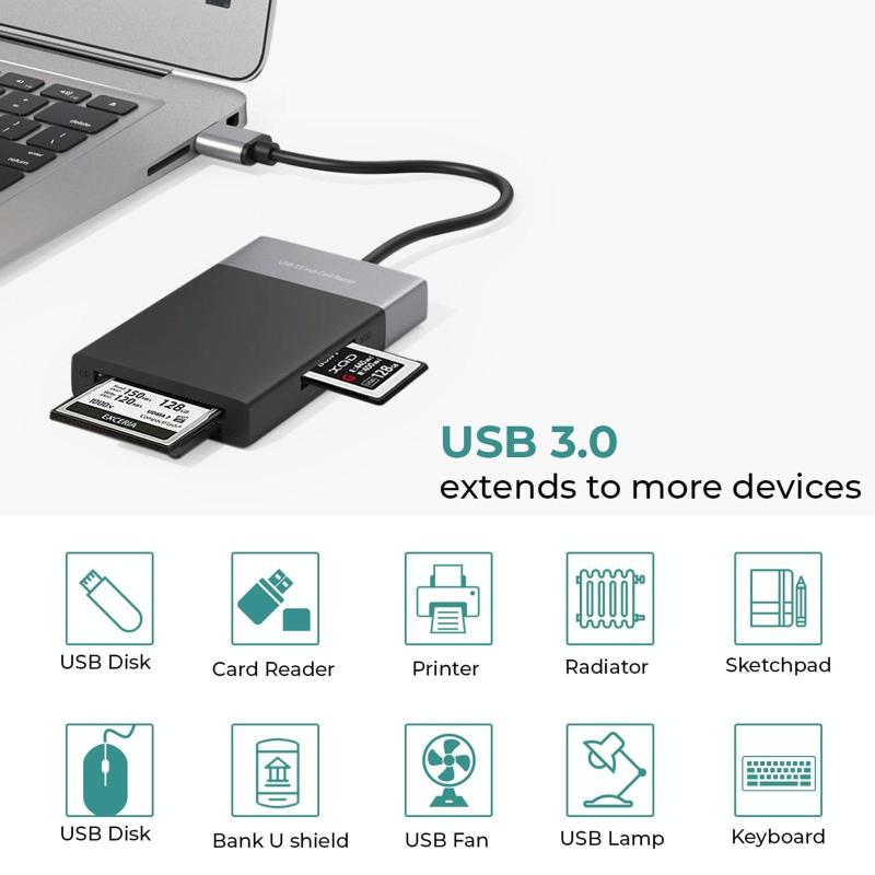 2. The item expands 2 USB 3.0 and XQD/CF/SD/TF card read by USB3.0
