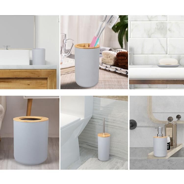 5. Το σετ των έξι τεμαχίων περιλαμβάνει: κάδο απορριμμάτων X1, βούρτσα τουαλέτας X1, μπουκάλι λοσιόν X1, σαπουδiera X1, κούπα οδοντόβουρτσας X1, κούπα στοματικού διαλύματος X1
