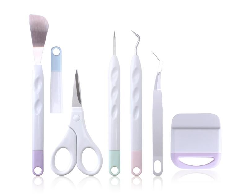 7. Ψαλίδι: Χρησιμοποιεί λεπίδα με μικροσκοπική μύτη για να κόβει καθαρά και να παρέχει ακριβή κοπή όλων των υλικών. Οι σκληρυμένες λεπίδες από ανοξείδωτο ατσάλι διαθέτουν αφαιρούμενα καλύμματα λεπίδων.