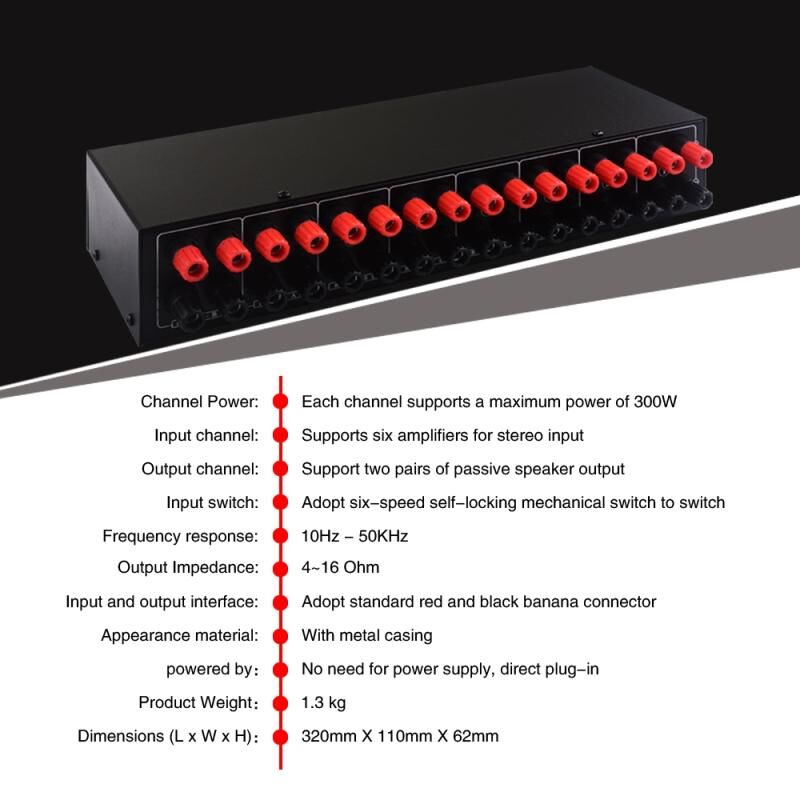 1. 6 σύνολα ενισχυτή ισχύος με διακόπτη επιλογής εξόδου τύπου κλειδιού, 2 σύνολα στερεοφωνικών ηχείων με διακόπτη επιλογής εξόδου τύπου κλειδιού (2 σύνολα ηχείων μπορούν να ξεκινήσουν ή να κλείσουν ανεξάρτητα)