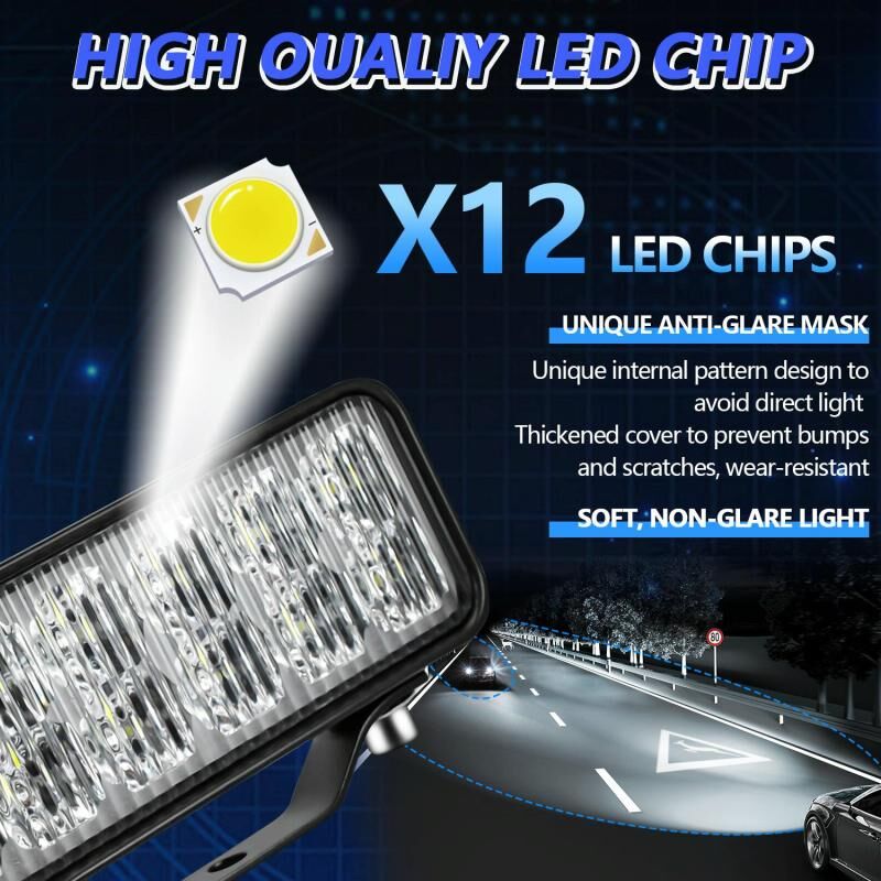 13. The LED light bar is equipped with 12 high-intensity chips, and the color temperature of the strong light is 6000K white light. When driving in the dark night, the high-quality chip + new anti-glare lens design can maintain high brightness while preventing glare from affecting oncoming vehicles or pedestrians, making your driving more comfortable and safe.