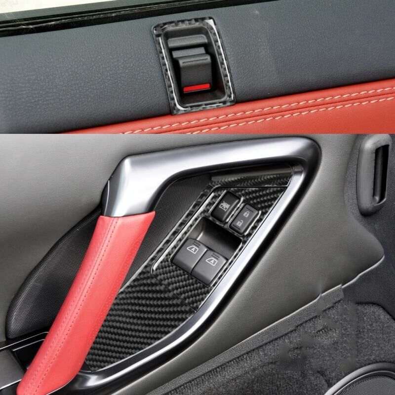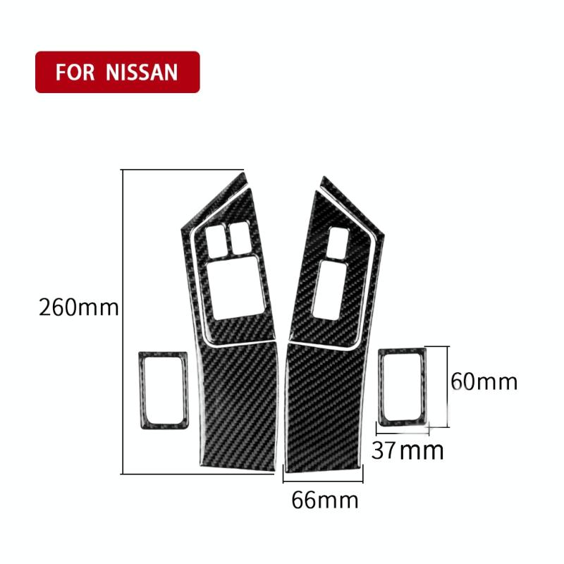 6 PCS Car Carbon Fiber Window Lift Button Door Lock Decorative Sticker for Nissan GTR R35 2008-2016, Left Drive
