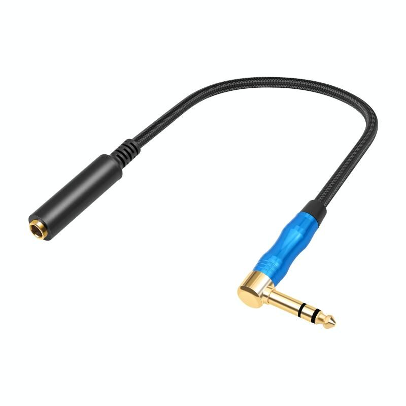 6.35mm 1/4 TRS αρσενικό στερεοφωνικό αγκώνα σε θηλυκό καλώδιο ήχου ηλεκτρικής κιθάρας, μήκος: 0.3m (μαύρο μπλε)