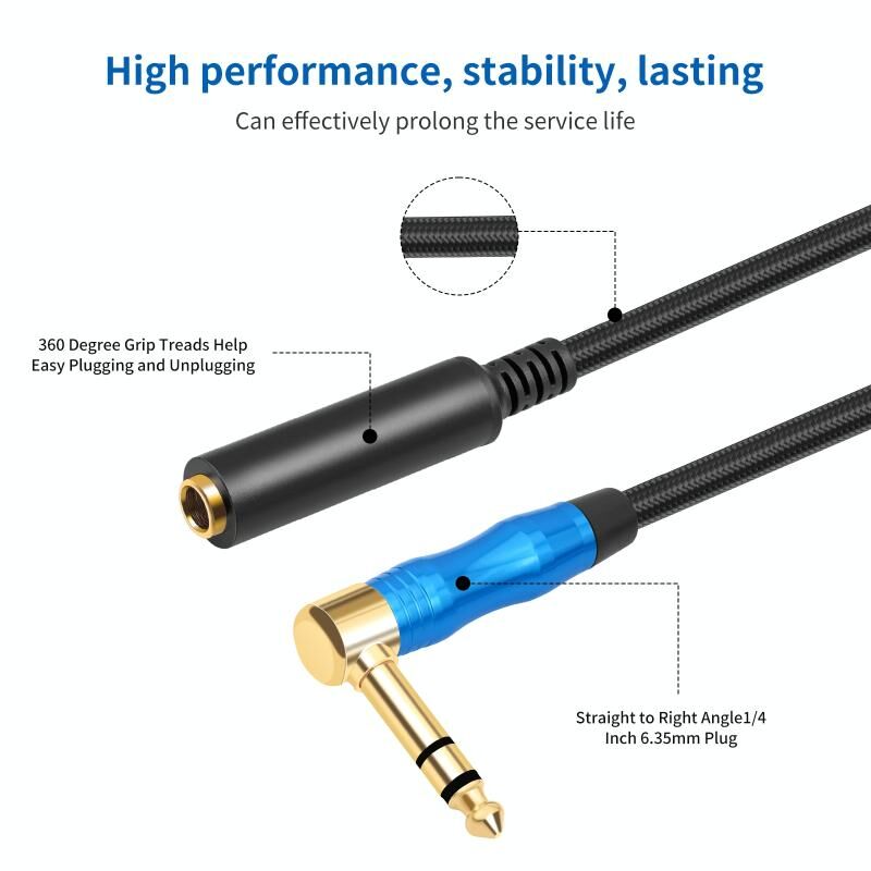 5. The 6.35 male plug adopts a 90-degree elbow design, which is more convenient for wiring in a small space.
