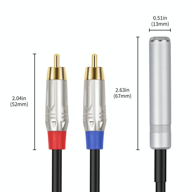 5. This audio cable can convert the 6.35mm stereo output interface into 2 RCA male interfaces. For example, the 6.35 TRS output of the mixer is converted to a dual RCA interface through this adapter cable and connected to the input interface of the power amplifier.