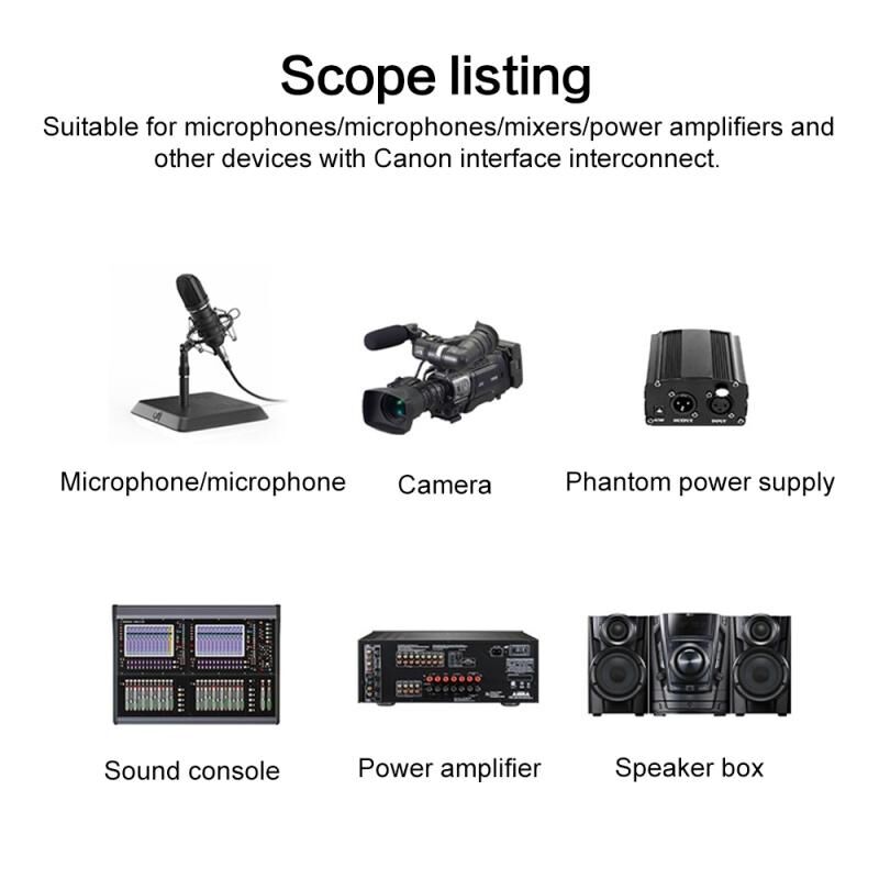 8. Κατάλληλο για μικρόφωνα, μικρόφωνα, μίκτες, ενισχυτές και άλλες συσκευές με διεπαφές XLR για να συνδεθούν μεταξύ τους