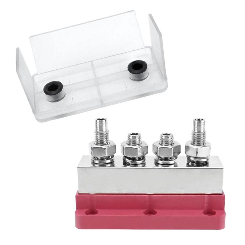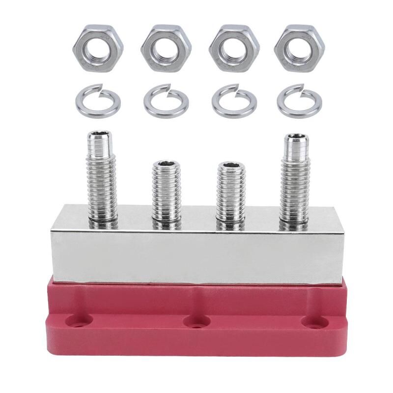 600A RV Yacht Copper Bolt 4 Stud Heavy Duty Busbar Terminal, Color: Red Single