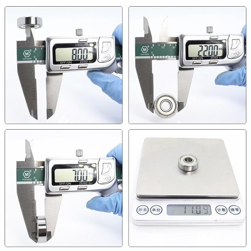 7. 608zz: εσωτερική διάμετρος 8 mm, εξωτερική διάμετρος 22 mm, πλάτος 7 mm