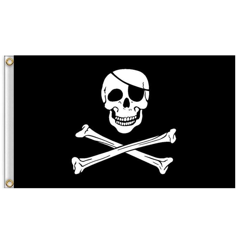 Σημαιοστολισμός Σκελετού Πειρατή Στοιωμένου Σπιτιού 60x90cm, Ύφασμα Κρεμαστού για το Halloween, Στυλ: Μάσκα με φαλακρό μάτι
