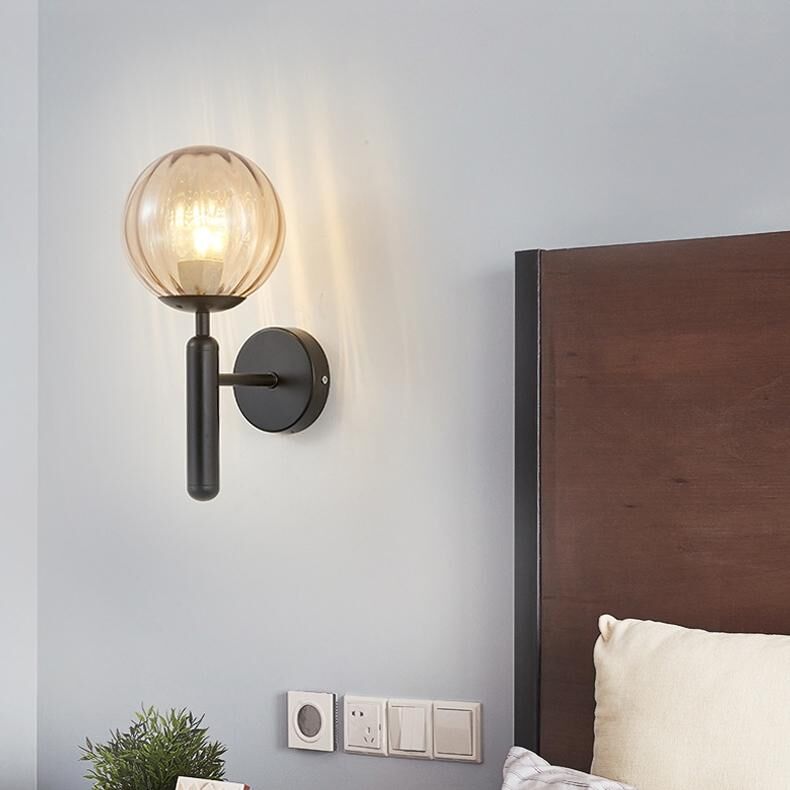 6102 Στρογγυλό γυάλινο φως τοίχου LED Hotel Bedroom Bedside Living Room, Πηγή ενέργειας: 5W Λευκό φως (μαύρο ριγωτό πορτοκαλί αμπαζούρ)