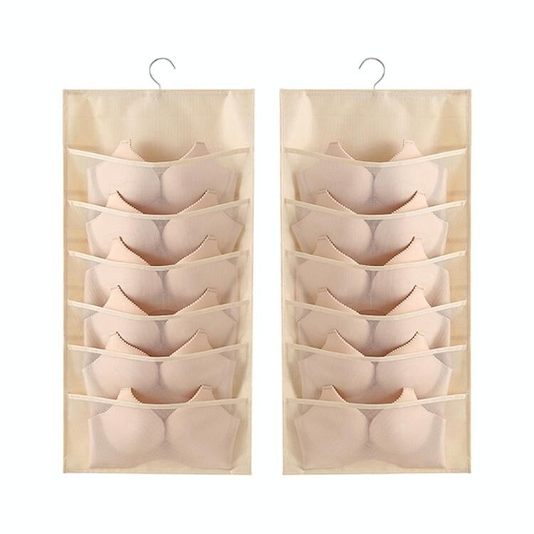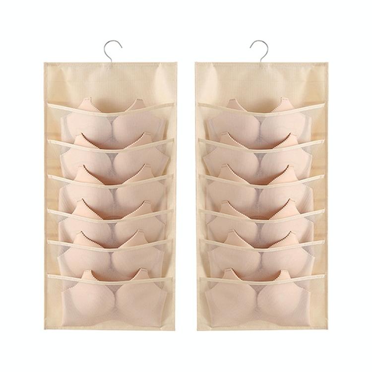 6+6 Grids Underwear Storage Bag Non-woven Double-sided Hanging Storage Bag(Beige)