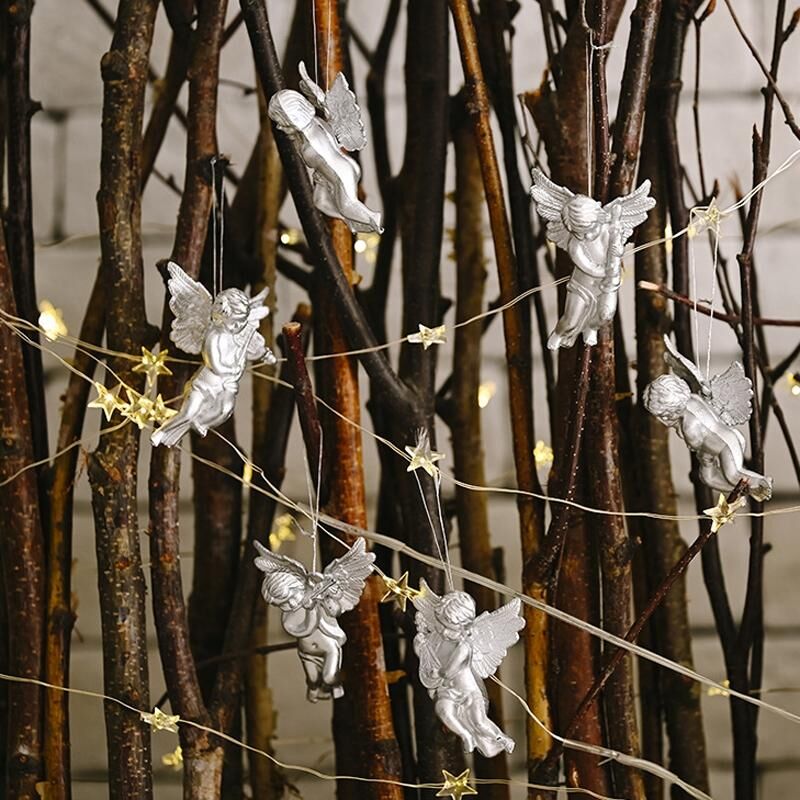 6τεμ./Συσκευασία Διακοσμητικό μενταγιόν αγγέλου Χριστουγέννων, επιχρυσωμένο, ημι-διάστατο, κρεμαστό στολίδι (Χρυσό)