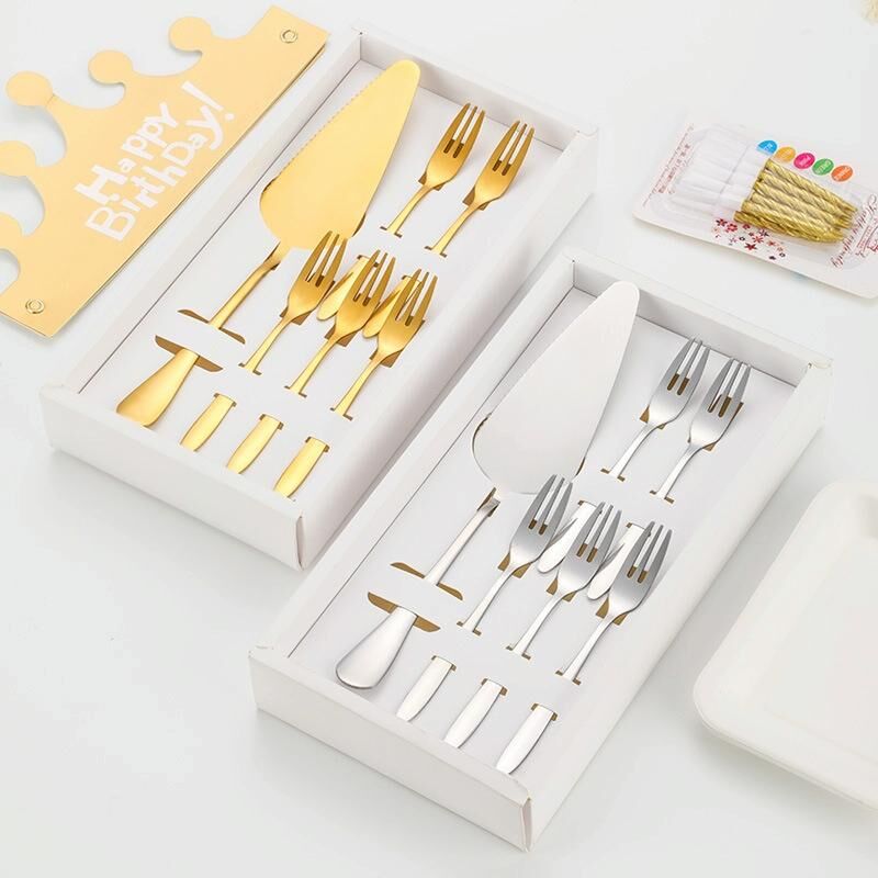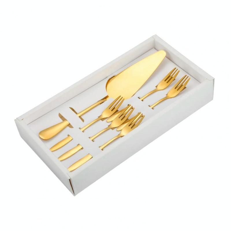 Σετ μαχαιριών και πιρουνιών για κέικ από ανοξείδωτο ατσάλι 6 τεμαχίων/σετ, χρώμα: Χρυσό με πιρούνια με 3 μύτες