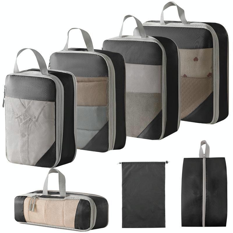 7 In 1 Mesh Compressed Travel Organizer Bag Luggage Clothes Shoes Toiletries Storage Bag(Black)