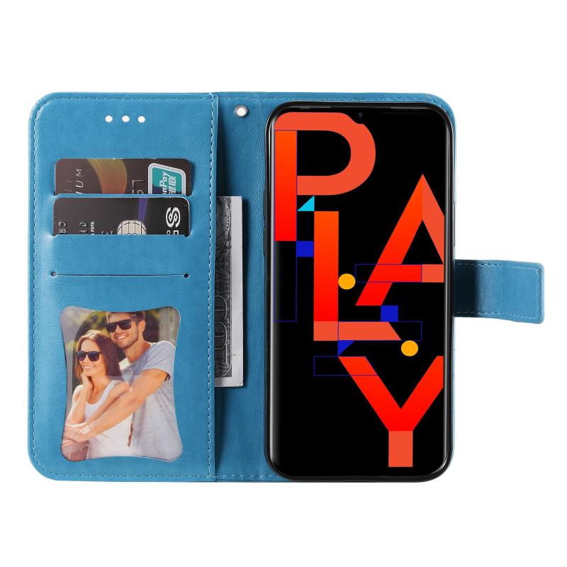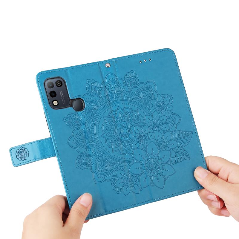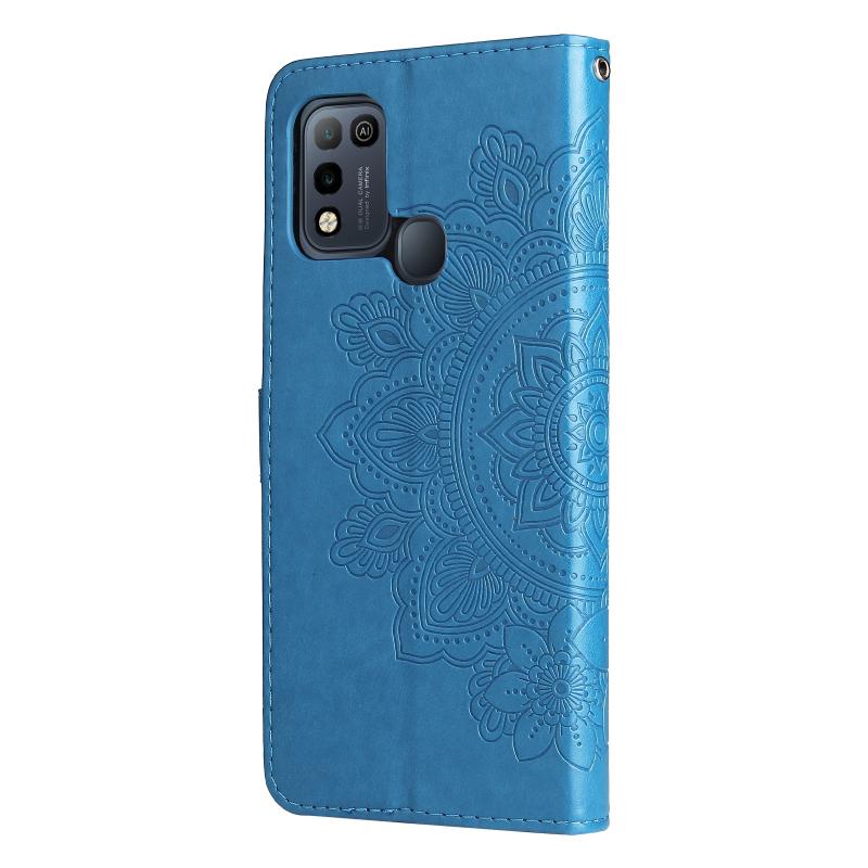 Θήκη από Δερματίνη PU με Οριζόντιο Άνοιγμα και ανάγλυφο σχέδιο με 7 πέταλα λουλουδιών, με Θήκη, Θήκες Καρτών, Πορτοφόλι & Φωτοκορνίτσα για Infinix Hot 10 Play (Μπλε)
