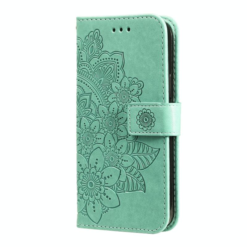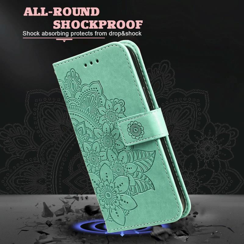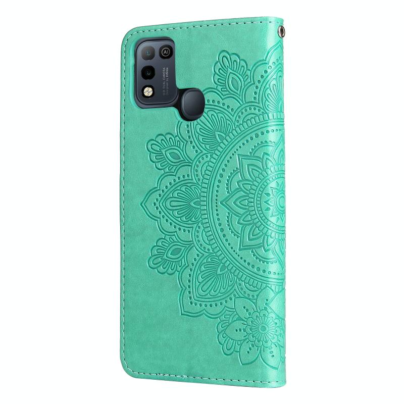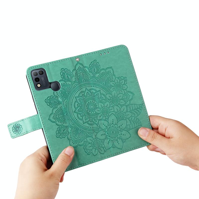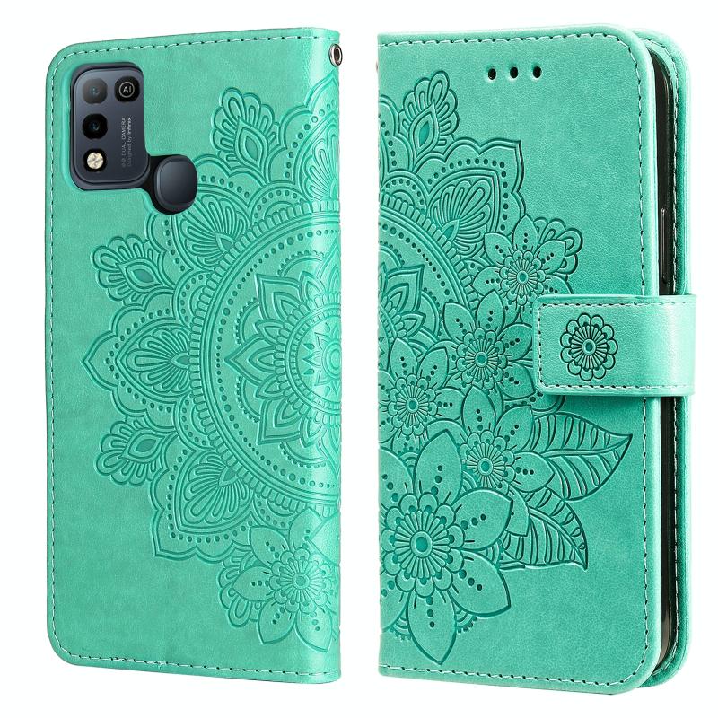 Θήκη από Δερματίνη PU με Οριζόντιο Άνοιγμα και ανάγλυφο σχέδιο με 7 πέταλα λουλουδιών, με Θήκη, Θήκες Καρτών, Πορτοφόλι και Φωτοκορνίτσα για Infinix Smart 5 / Hot 10 Lite / X657 (πράσινο)