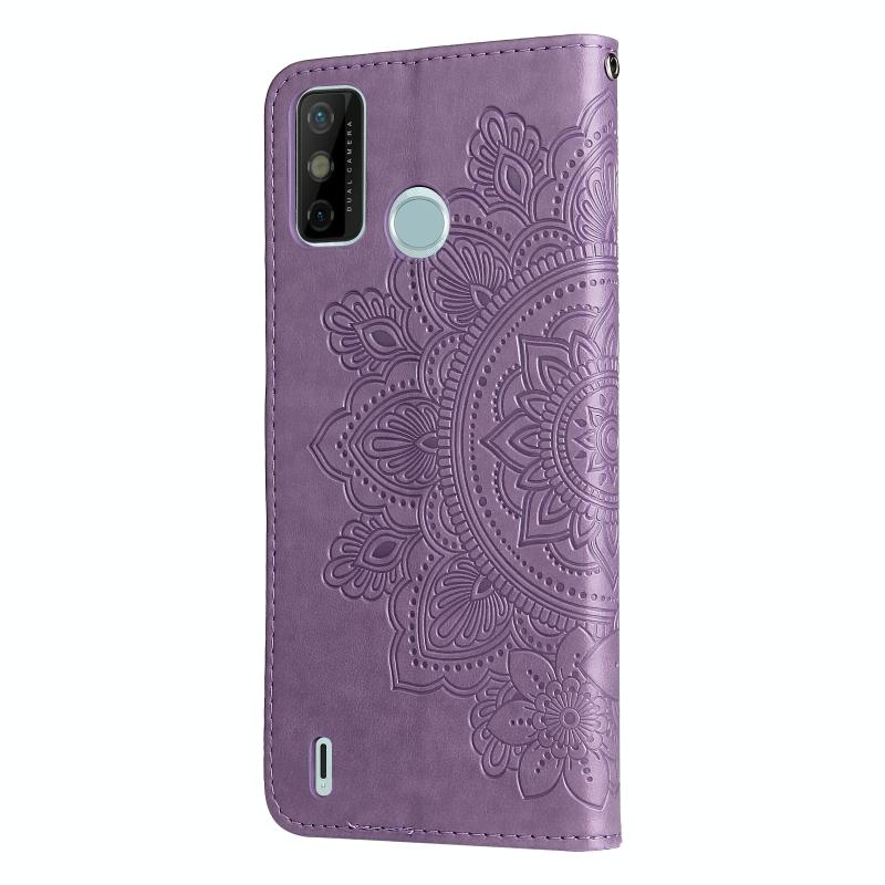 Θήκη από Δερματίνη PU με Οριζόντιο Άνοιγμα και ανάγλυφο σχέδιο με 7 πέταλα λουλουδιών, με Θήκη, Θήκες Καρτών, Πορτοφόλι & Φωτοκορνίτσα για Tecno Spark 6 Go (Ανοιχτό Μωβ)