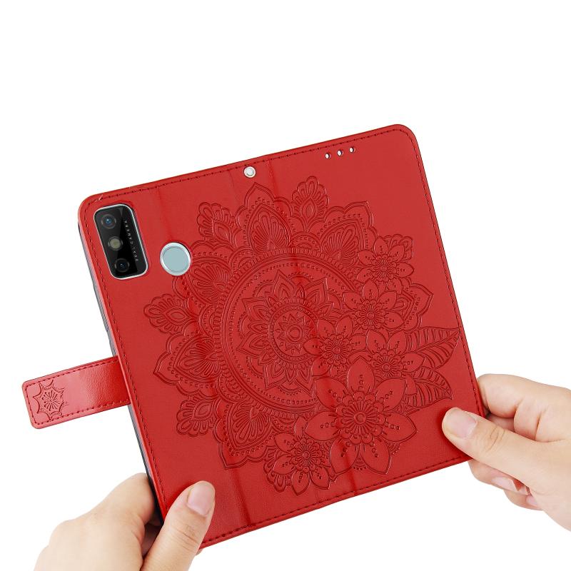 Θήκη από Δερματίνη PU με Οριζόντιο Άνοιγμα και ανάγλυφο σχέδιο με 7 πέταλα λουλουδιών, με Θήκη, Θήκες Καρτών, Πορτοφόλι & Φωτοκορνίτσα για Tecno Spark 6 Go (Ανοιχτό Μωβ)