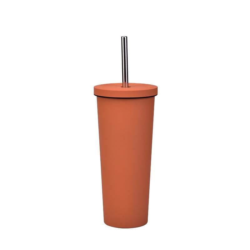 700ml Large Capacity Double Stainless Steel Straw Cup Vacuum Outdoor 304 Insulation Cup Car Water Cup(Cinnabar Orange)