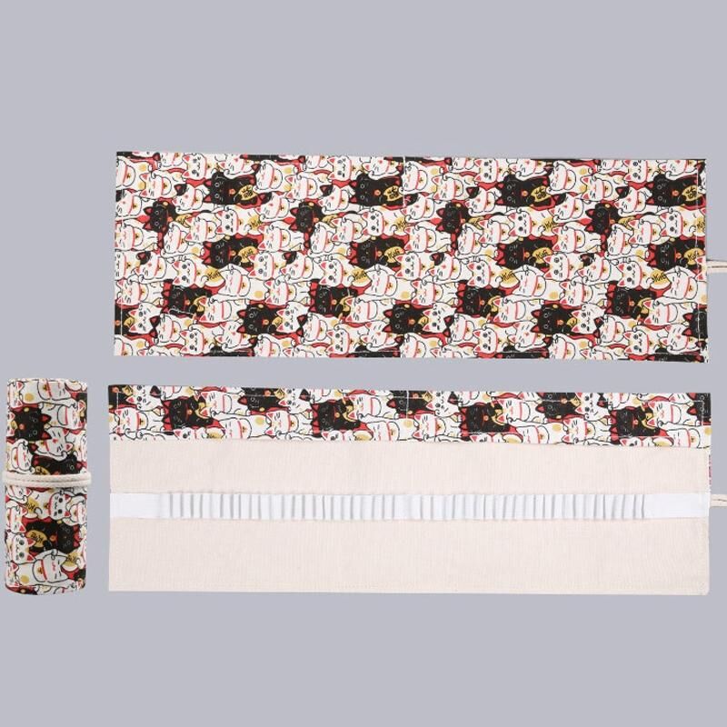 Θήκη μολυβιών από καμβά χειροποίητη με 72 τρύπες, μεγάλη χωρητικότητα, για αγόρια και κορίτσια, κουτί σταθερής ύλης για χρωματιστά μολύβια και σκίτσα (Τυχερή Γάτα)