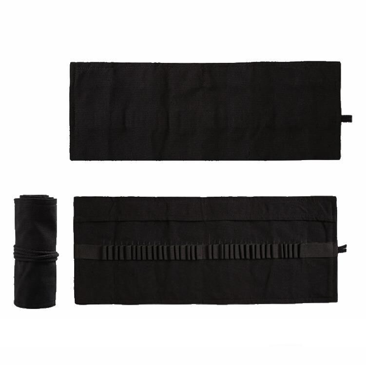 Θήκη στυλό σε ρολό από καμβά χειροποίητη, καθαρά μαύρη, 72 οπές, μεγάλης χωρητικότητας για αγόρια και κορίτσια, σκίτσο, μολύβια χρωμάτων, κουρτίνα.