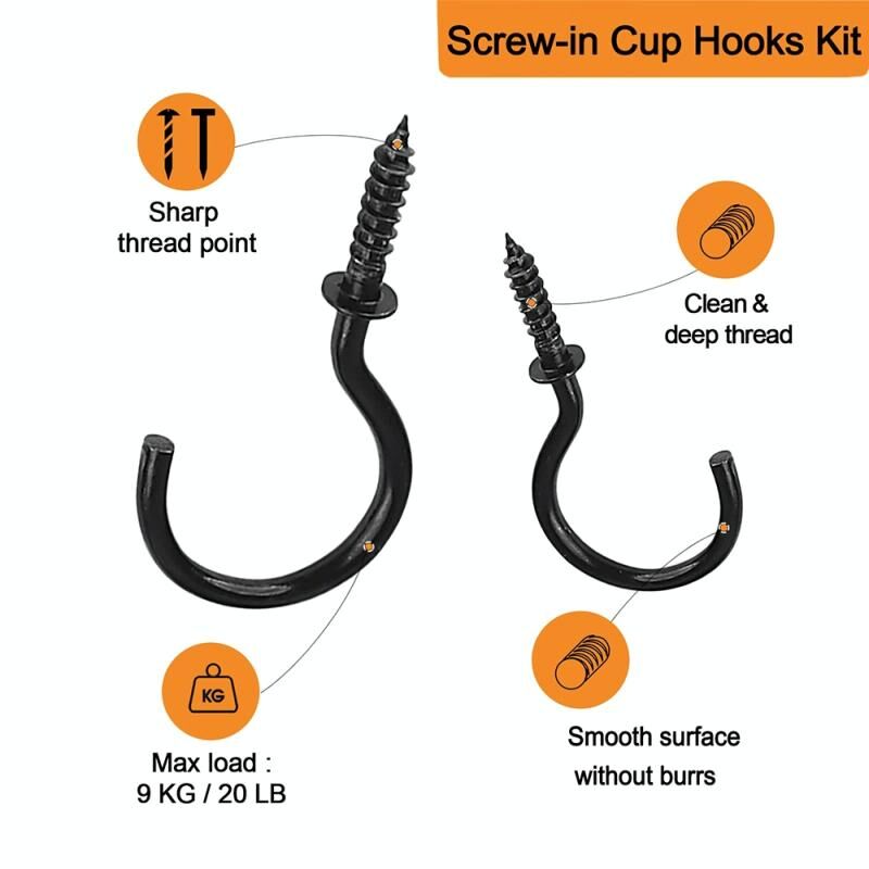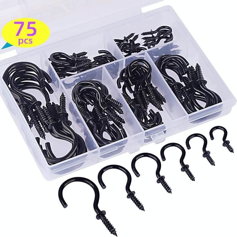 75pcs /Box Screw-in οροφής Hook Set Home Storage Wall Cup Hook Lamp Hook (Μαύρο)