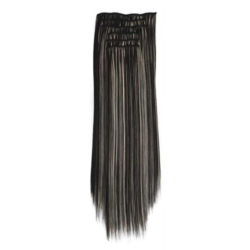 7pcs / Set Clips Long Straight Hair Extension Pieces 16 Clips Χημικές περούκες ινών, μοντέλο: 1BH613#