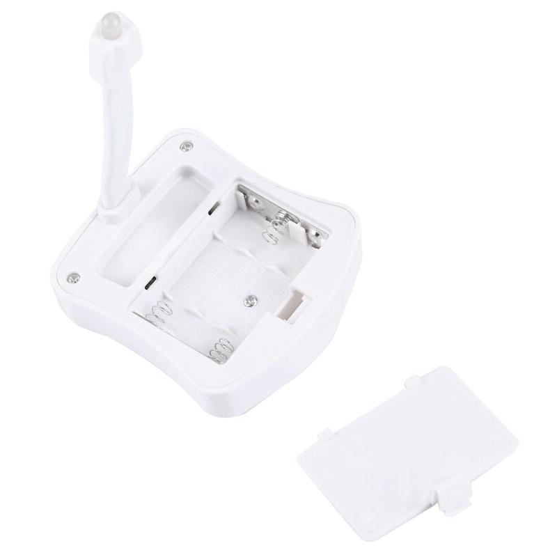 4. Easy to install: insert batterries, right size arm to hang lightbowl on the rim of the toilet.