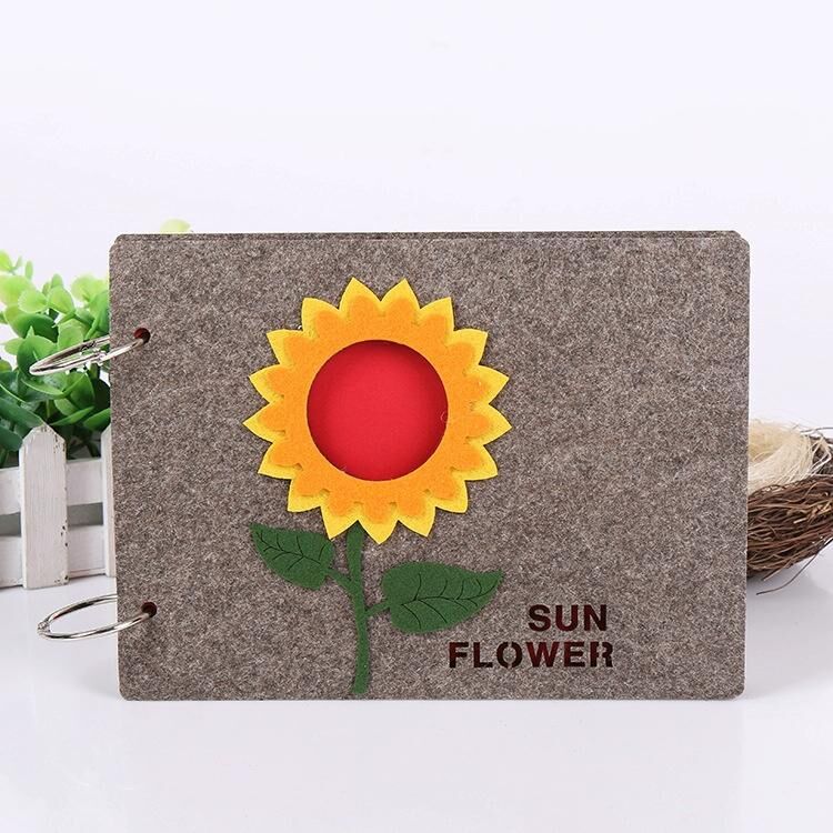 8 Inch 30 Sheets Retro Cartoon Photo Album Felt Album Creative Hollow Souvenir Album,(Dark Gray Sunflower)