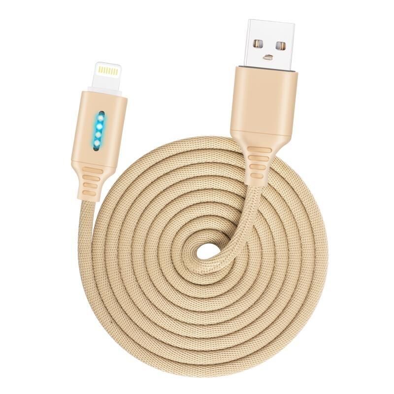 Καλώδιο φόρτισης/μεταφοράς δεδομένων με 8 ακίδες, κατασκευασμένο από κράμα ψευδαργύρου, φωτεινό, με αυτόματη διακοπή ρεύματος (χρυσό).