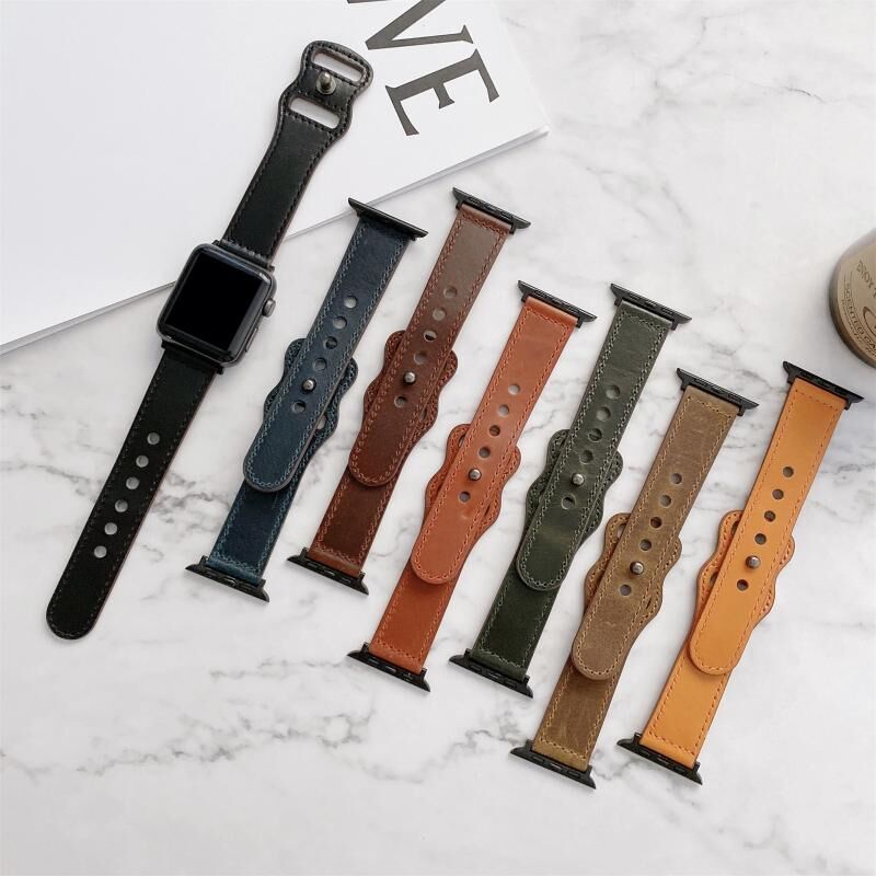 Λουρί ρολογιού δέρματος ρετρό με αγκράφα σε σχήμα 8 για Apple Watch Series 9&8&7 41mm / SE 3&SE 2&6&SE&5&4 40mm / 3&2&1 38mm (Μαύρο)