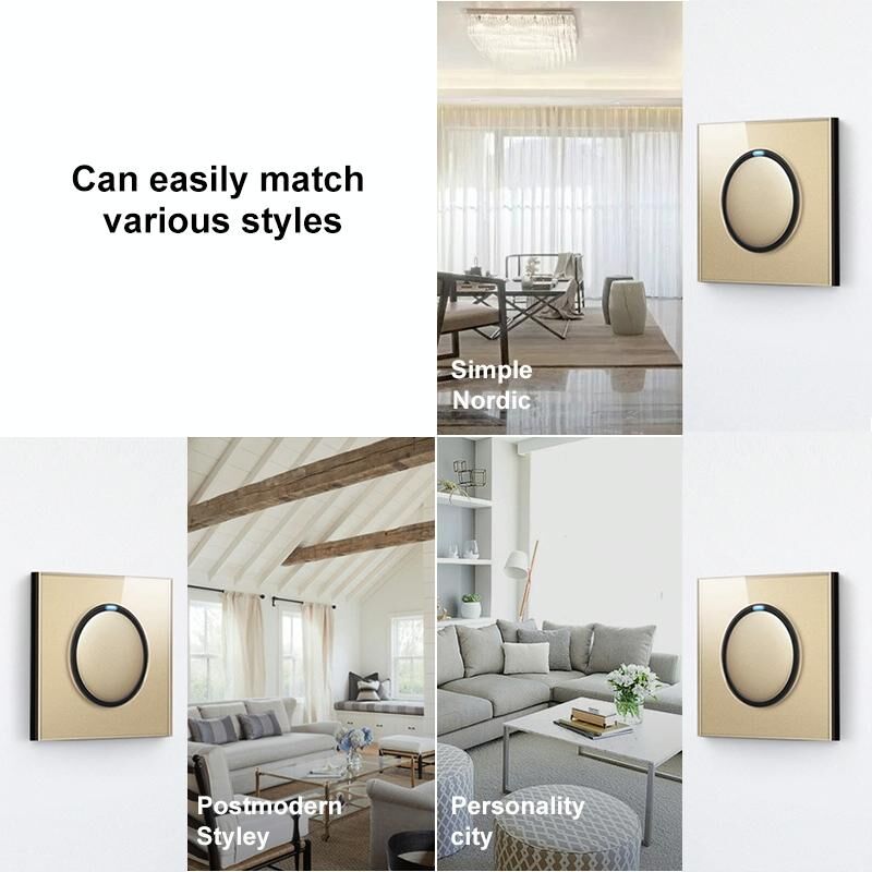 86 χιλιοστά στρογγυλό LED μετριασμένο γυάλινο πίνακα διακόπτη, χρυσό στρογγυλό γυαλί, στυλ: έλεγχος τριών χρεώσεων