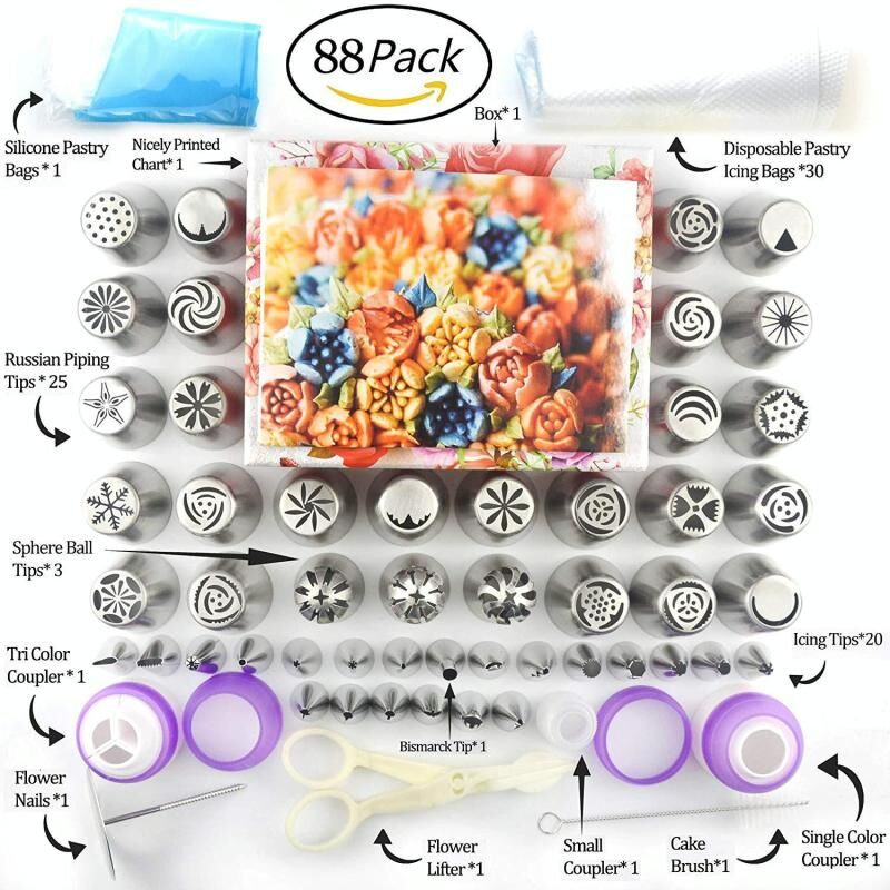 5. Το σετ περιέχει: τυχαία μεγάλη μύτη διακόσμησης X25, μικρή μύτη διακόσμησης X22, μετατροπέας X3, ψαλίδι διακόσμησης X1, πινέλο διακόσμησης X1, στρογγυλή μύτη διακόσμησης X3, επαναχρησιμοποιούμενη σακούλα διακόσμησης X1, σακούλα διακόσμησης μιας χρήσης X30, καρφί διακόσμησης X1, μύτη για σου X1