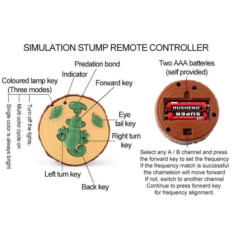 6. Τροφοδοσία: 2 x μπαταρίες AAA για το τηλεχειριστήριο, 4 x μπαταρίες AA για το χαμαιλέοντα (δεν περιλαμβάνονται)