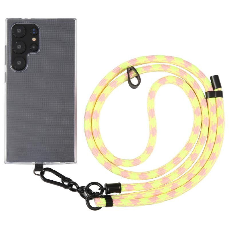 Κορδόνι τηλεφώνου 8mm με ρυθμιζόμενη αλυσίδα λαιμού και ιμάντα crossbody από νάιλον, ρυθμιζόμενο μήκος: περίπου 75-135cm (Κίτρινο Ροζ)