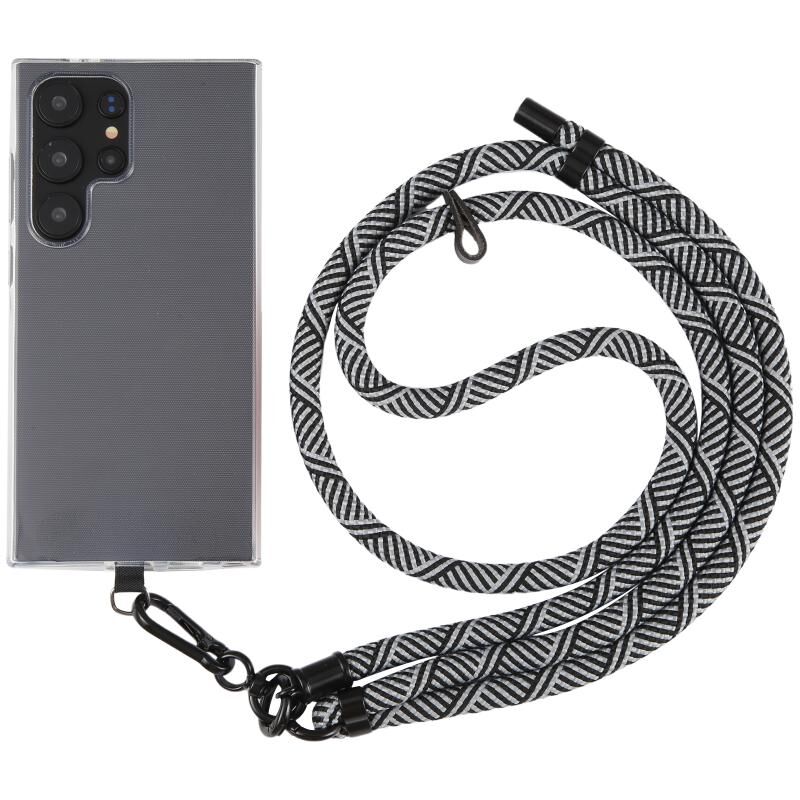 Κορδόνι τηλεφώνου με ρυθμιζόμενο λουρί λαιμού από νάιλον με υφή twill 8mm, αντιολισθητικό, crossbody, ρυθμιζόμενο μήκος: περίπου 75-135cm (Μαύρο Λευκό)