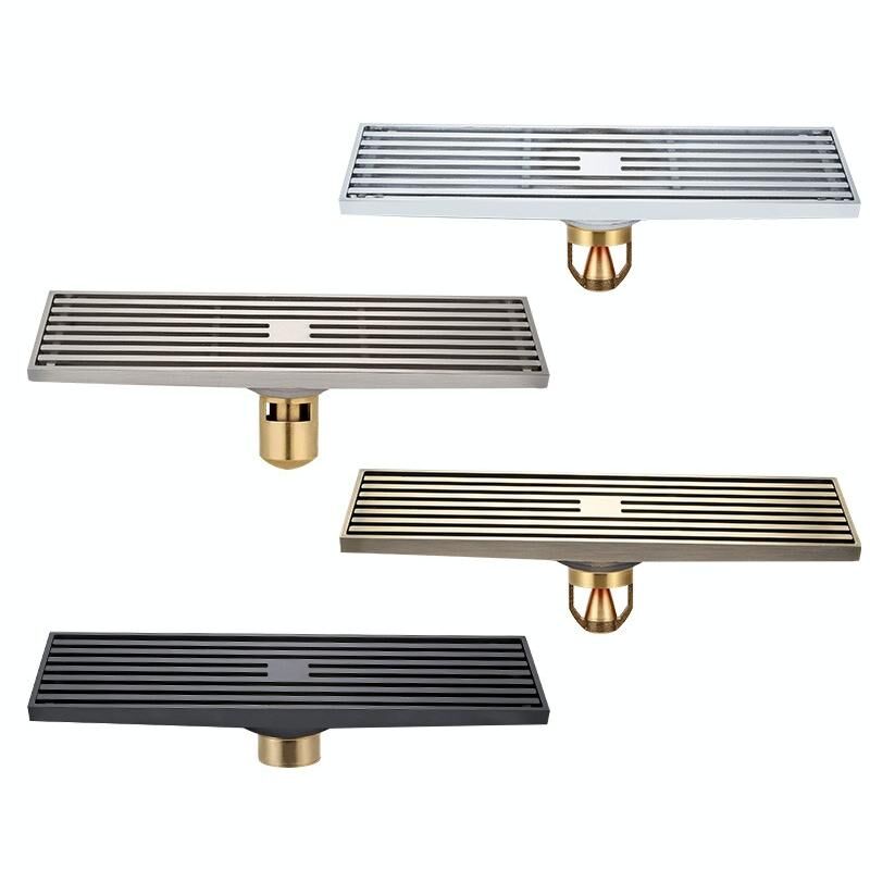8x30cm Εκτεταμένη πλήρης χάλκινη λωρίδα αποστράγγισης δαπέδου, Στυλ: Μαύρη ευθεία σειρά