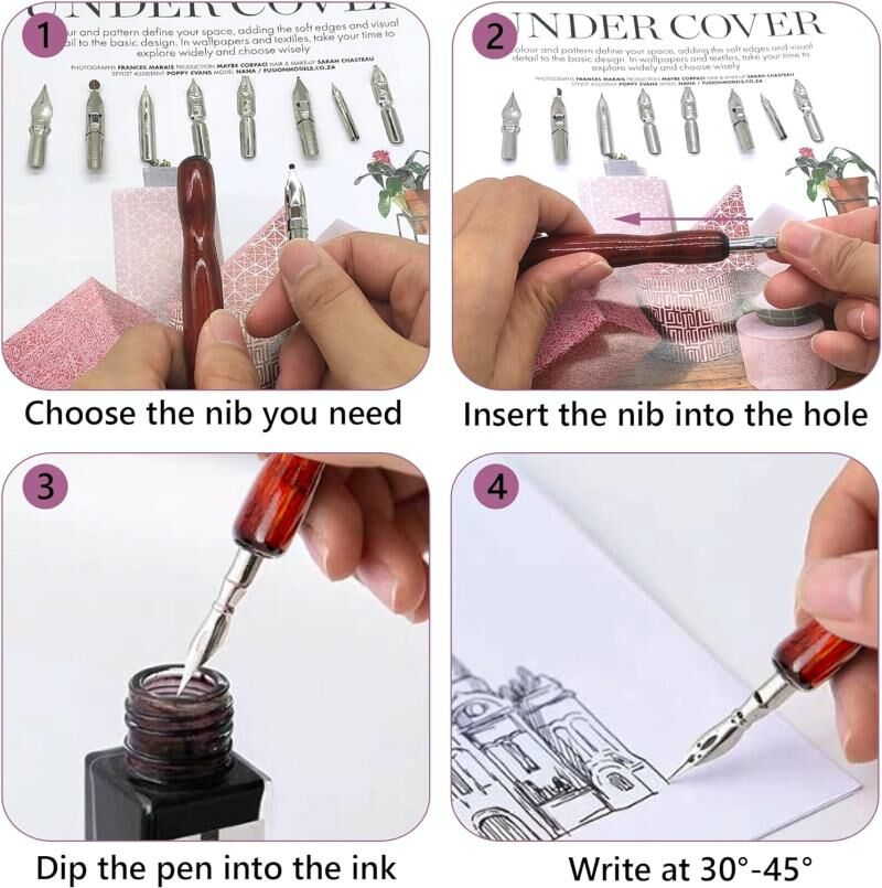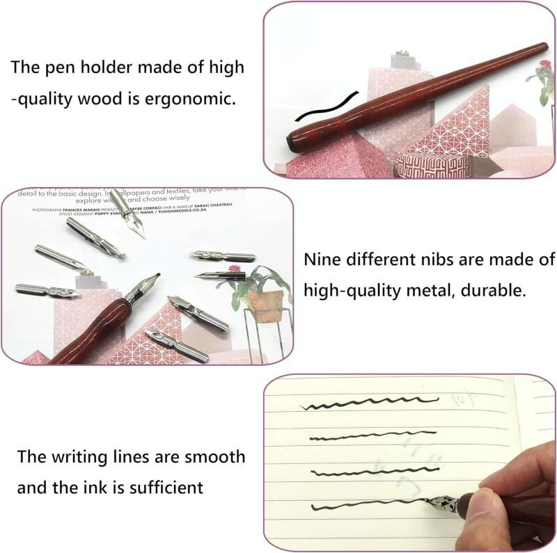 5. Ευρύ φάσμα χρήσεων: Το στυλό βύθισης μπορεί να χρησιμοποιηθεί για την εξάσκηση λουλουδιών χαρακτήρων, γοτθικών χαρακτήρων, ζωγραφικής καρτούν κόμικς, σκιαγραφίας, κατασκευής αφισών κ.λπ. Είναι επίσης κατάλληλο ως δώρο για την οικογένεια και τους φίλους που αγαπούν την καλλιγραφία και τη ζωγραφική.