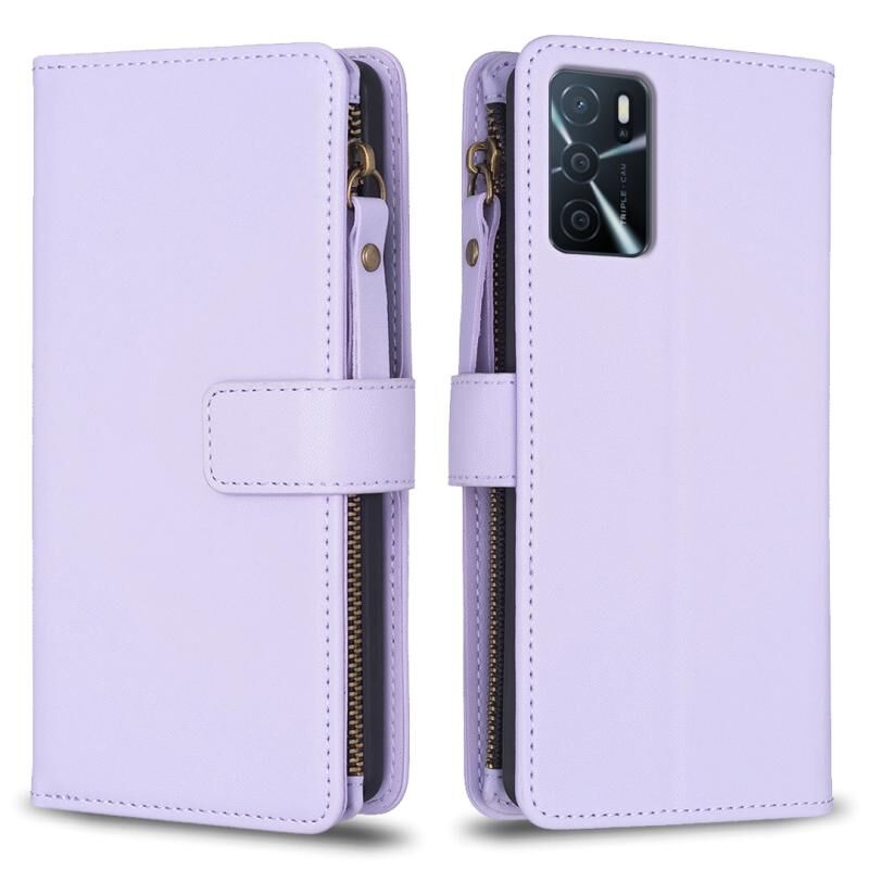 9 υποδοχές καρτών φερμουάρ πορτοφόλι δέρμα Flip υπόθεση τηλεφώνου για OPPO A16 / A16s / A54s / A55 5G / A54 4G (Light Purple)