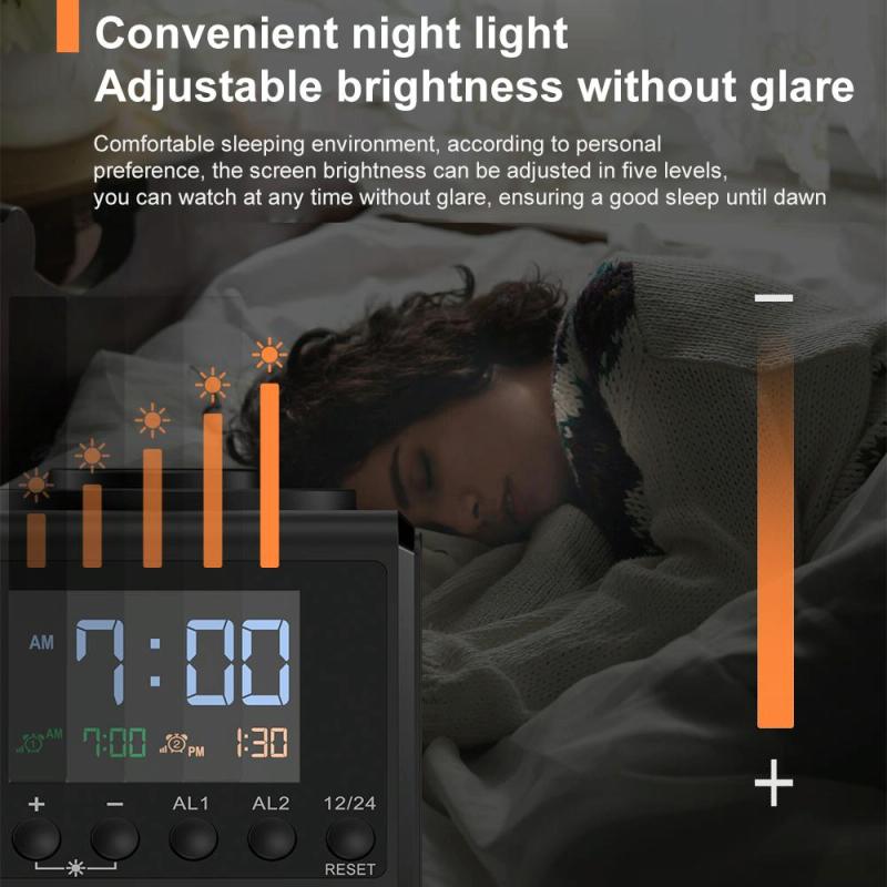 8. Smart Dual Alarm Design: Enables separate alarm settings for weekdays and holidays, catering to varied schedules.