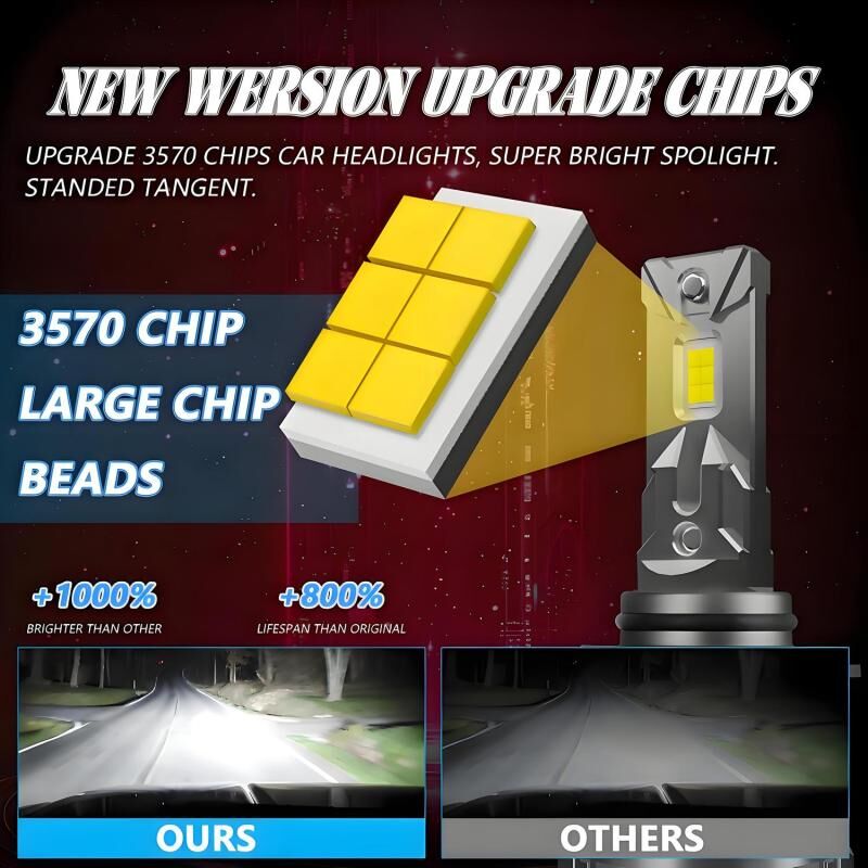 2. Adopt 3570-55mil CSP chip, consistent light point, condense perfect light type, in line with the original car design, high power, high brightness, turn night into day, ensure safe driving, a layer of oil film is attached to the surface of the lamp bead, making the color temperature of the headlight more stable, effectively reducing the light decay rate.