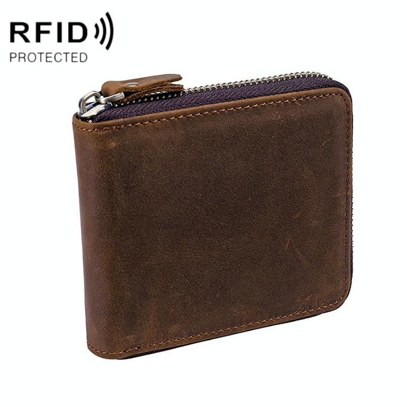 9039 RFID Antimagnetic Leather Zipper Wallet(Horizontal 3)