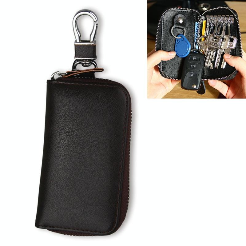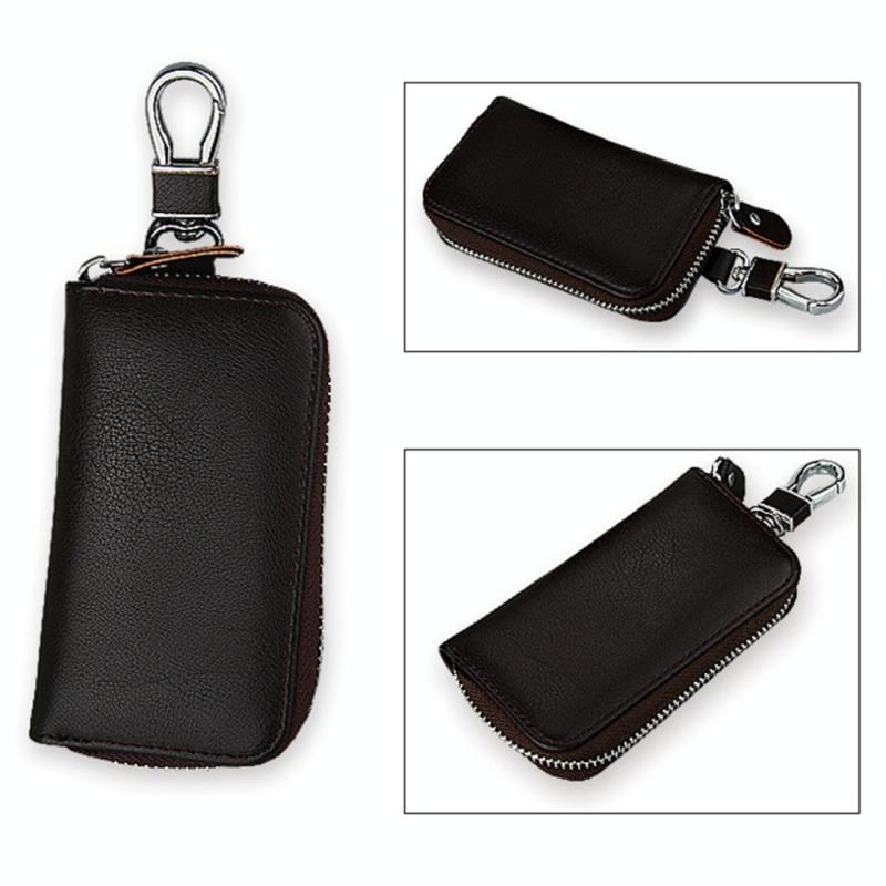 9092 Business Style Multifunctional Genuine Leather Zipper Car Key Bag(Coffee)