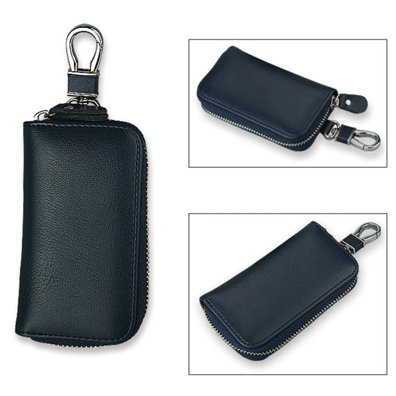 9092 Business Style Multifunctional Genuine Leather Zipper Car Key Bag(Dark Blue)