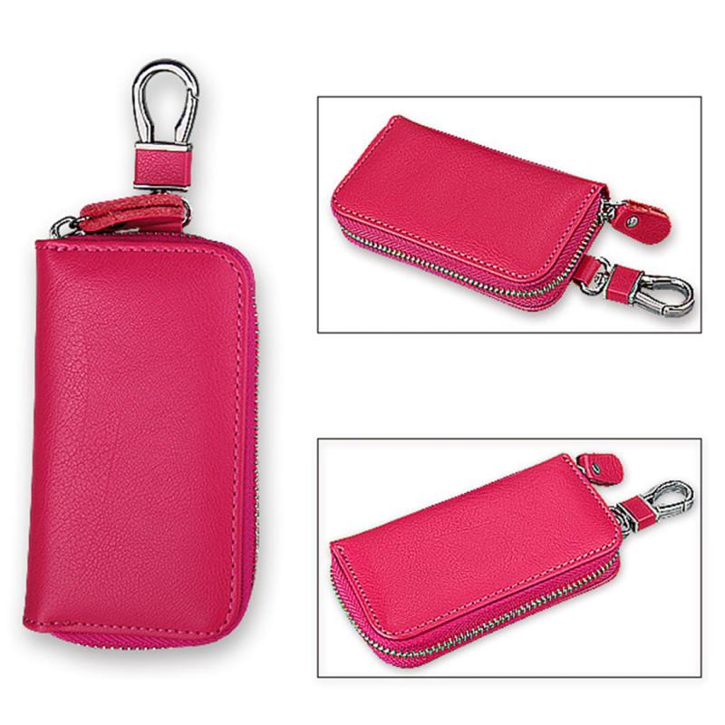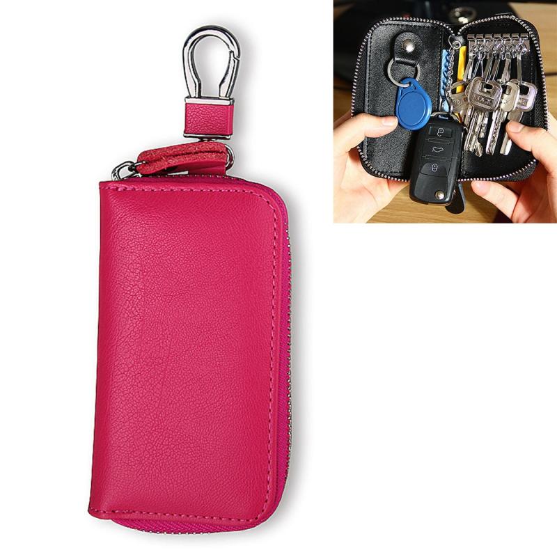 9092 Business Style Multifunctional Genuine Leather Zipper Car Key Bag(Magenta)