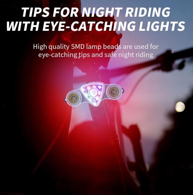 1. This bicycle tail light is designed with SMD lamp beads, high brightness, very eye-catching, can achieve good lighting and warning effects, it is a good choice for night riding.