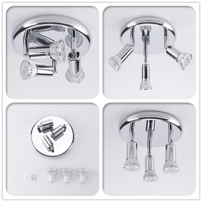 9W Στρογγυλό τριών κεφαλών LED GU10 Οροφής Ρυθμιζόμενος προβολέας μπροστινού καθρέφτη, εκπέμποντας χρώμα: Θερμό φως (χρώμιο)