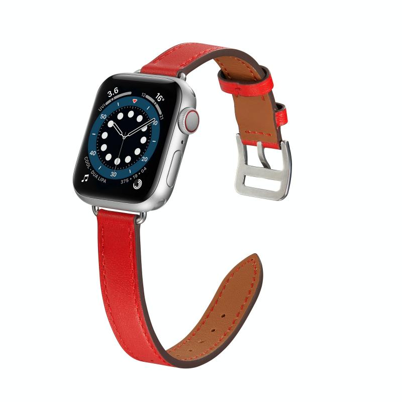 Λουράκι ρολογιού από δέρμα για Apple Watch Series 9&8&7 41mm / SE 3&SE 2&6&SE&5&4 40mm / 3&2&1 38mm (Κόκκινο)