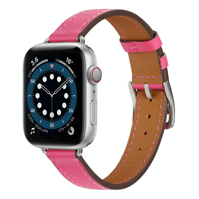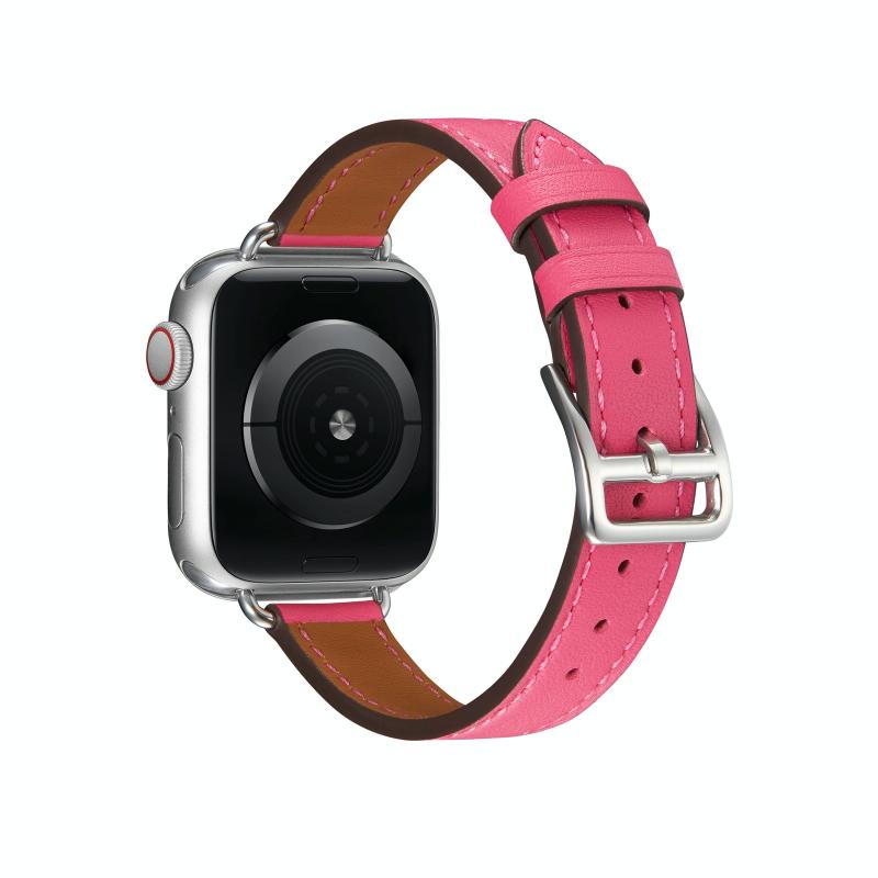 Λουράκι ρολογιού από δέρμα στυλ για Apple Watch Ultra 49mm & Watch Ultra 2 49mm / Series 9 & 8 & 7 45mm / SE 3 & SE 2 & 6 & SE & 5 & 4 44mm / 3 & 2 & 1 42mm (Ροζέ κόκκινο)